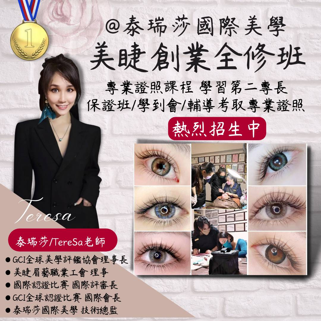 報名美睫課程/紋繡課程/霧眉課程,推薦您選擇泰瑞莎國際美學,保證班、學到會、輔導取得專業證照,成效卓越有口碑。學習第二專長,就業、創業終身受用無窮。國際師資、專業教學、學習有保障,年滿15歲 無經驗&零基礎皆可報名!